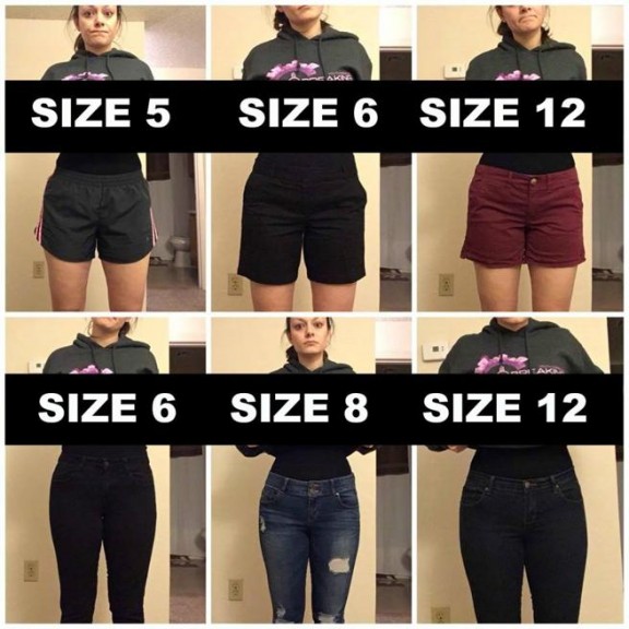 Para demostrar su teoría, la joven se probó piezas de ropa de varias midas y las publicó en imágenes en Facebook. ¿La conclusión? Su cuerpo se ajustaba a todas las tallas.
